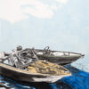 For example the Nebe’s series of paintings entitled Große Dämmerung, (Great Dawn 2018) Sommerabend (der Abschied), (Summer Evening, The Farewell), Morgenrot IV (Daybreak) Felsental (dunkle Nacht) (Felsental, Dark Night) Winternacht (Winter Night) all oil paint on paper dating from this year, 2021, each referring to the psychical light to darkness transitions of our daily lives—those preemptive hypnogogic and hypnopompic reveries. With the advent of the post-industrial age, a certain sense of Romantic sentiment has equally created an industrial sense of nostalgia. (Bernd and Hilla Becher) Hence the junkyard or car graveyard in Senastian Nebe’s paintings take on it own sense of Romantic drama and melancholy. We should note that the Industrial Revolution ran of course in direct parallel to the development of Romanticism. We might think that the large diptych or paired images of Blende (2017), immersed in the forest setting, which has been materially violated, is a critique of the modern throwaway material age. Certainly, a lot of artist-painters who have recently revived German Romanticism, are conscious of the current view of the environment, and have used it as a critical form of expression pointing to our increasingly polluted violations of the natural world (Clemens Tremmel). Equally his series called BOY (2020) is an image of a rather nostalgic “out of time” motorboat, and plays upon the singular or isolated object, yet another reference, perhaps, to Casper David Friedrich and Romantic trait that stresses a particular viewing position and intensified singularity of focus. The singular object is extended in a work called Duene (2017), an anonymous yet singular period sports car, or if we see a human figure they are invariably lost in introspection, another obvious characteristic that runs throughout Romanticism. Therefore we might argue that the play of darkness and light, of the singular and introspective gaze, is the present perpetuum mobile of Nebe’s work.