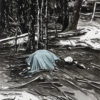 For instance we have the night camp scene. A blanket, a light. Someone spent the night here, but didn’t linger, and the blanket is folded neatly. You returned to this topic and relocated it to the forest…