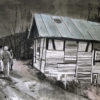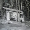The surprising element lies in the perfect dovetailing of drawn and real forms, which shapes the overall appearance. The trees, huts, things are displayed in all their details, all their “naturalness”. At the same time everything there is to see is pure drawing, pure imagery. This is a forest, this is a picture. Yet it is a particular forest, a forest selected for this image, that I face. The precision of the depiction is foremost owed to the decision to capture the forest as a forest in winter or autumn, bare of leaves, preferably a birch wood. The deciduous forest has been deprived of its leaves. With this variation, this »different appearance due to the time of day and year«, the trees reach »an exceptional level of reality«. This, I would add to Brecht, is a reality, which is inherently excluded from our society, an Other elevated above an unvaried, linear, excessively self-celebratory social existence bare of any direction. These trees evoke something unsettlingly autonomous, something that turns away from me, something that cannot be exploited. The few leaves that can be seen, are in danger of vanishing in an enormous shadow; they can only be seen in the pale back light, or otherwise, they shimmer in a peculiar remoteness. Thus the branches gain significant power, they entirely destructure the picture, for they are without volume, they rather lash and reach out anywhere, in any direction, as an ideal drawing matter; or the tree stumps, that stretch themselves spasmodically upwards, signifying a time “lived out”. All these elements destabilise the space, they are obstacles, which render the whole impenetrable. The trees appear as simple textures, without flesh, without leaves, without life, any life seems to be withdrawn, or pointing downwards. Furthermore, they are often falling, or broken, derived of their foundation. Down there are immeasurable piles of stones. Stones, rocks, the pinnacles of the inorganic, provide a highly “uneven” ground, a persisting foundation. One cannot be certain as to why there are so many stones inside the forest at all. Perhaps we should consider an upheaval, a reversal, during which the world of rocks had eruptively hewn its way into the forest and taken all its life. A harsh world. On other pictures, then again, pine forests are the rule, trees which, despite their “evergreen” leaves throughout the year, represent an apparent resistance to the natural cycles, much closer to the unchanging, resistant nature of the rocks than the vital movements of plant life. In effect, this is a barren, lifeless or silenced forest, which one approaches as a viewer – or a stroller.